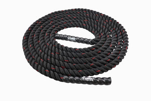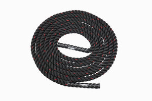 • Complete your workout space with this 30 FT x 1.5″ in Diameter Battle Rope designed for a full-body workout focusing on increasing muscular endurance and cardiovascular conditioning. Battle Ropes are built for athletes to train for increased power, build core strength, and improve explosiveness. This three-strand-thick exercise rope features comfortable hand grips and a durable Poly Dacron blend made to prevent breakage and fraying. The heavy-duty exercise rope can be used indoors or out and offers reliable, a long-lasting performance so that you can keep the focus on your workout.