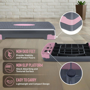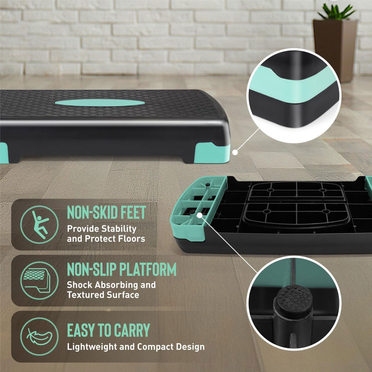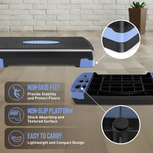 Sturdy and Durable Material - Made of high quality PP material, our aerobic stepper is wear-resistant and durable; With sturdy construction and strong load-bearing capacity, it can support up to 550 lbs weight, so you can exercise safely on it
