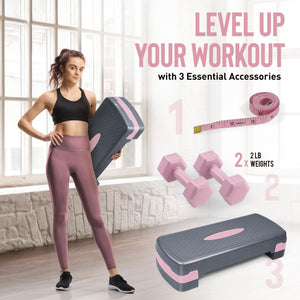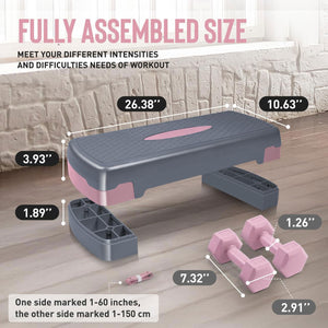 Versatile Usage Aerobic Stepper Set - Our aerobic stepper builds endurance, boosts exercise intensity, and helps with weight loss; it also includes dumbbells and a measuring tape to enhance your workouts and effectively monitor your fitness progress