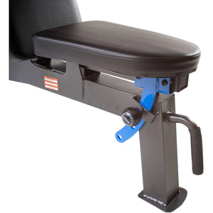 • Outfit your personal gym with the style and versatility of the Fuel Pureformance Deluxe Utility Bench. This compact and handsome bench transitions into a wide variety of positions that allow you to target the specific muscle groups you want to build. The steel construction, powder-finish and sturdy build will hold up to even the most intense strength routine. The gun metal coating and blue accents give the bench an attractive appearance that will look great in your home, garage or gym. Additionally, the transportation wheels and compact size will accommodate even the smallest spaces, making this an optimal choice for your strength training routine.