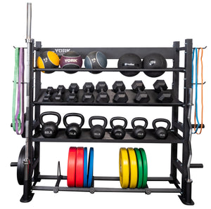 The new YORK Multi-Purpose Storage Rack is your one-stop storage option for all your fitness equipment. From plates to bars, dumbbells to wall balls, this rack will meet your needs while looking great in your gym.