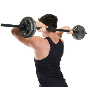 The Standard CAP Barbell Weightlifting Bar is a nice addition to your own home gym. It is very simple to use for a wide variety of movements. This 5-foot weightlifting bar is the answer for those who would rather work out in the comfort of home with their own equipment. No longer do you have to wipe someone else's sweat from the things you're using. The weight lifting bar is made of solid steel and has a black oxide finish for long life. This cuts back on wear and tear caused by repeated use over time. It is built to fit all plates with 1-inch holes. Plus, it allows you to perform a number of workouts including arm, chest, back, leg and core exercises. The threaded ends provide a safe alternative to traditional collars. It pairs well with all of your other equipment