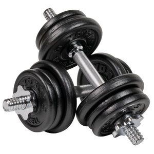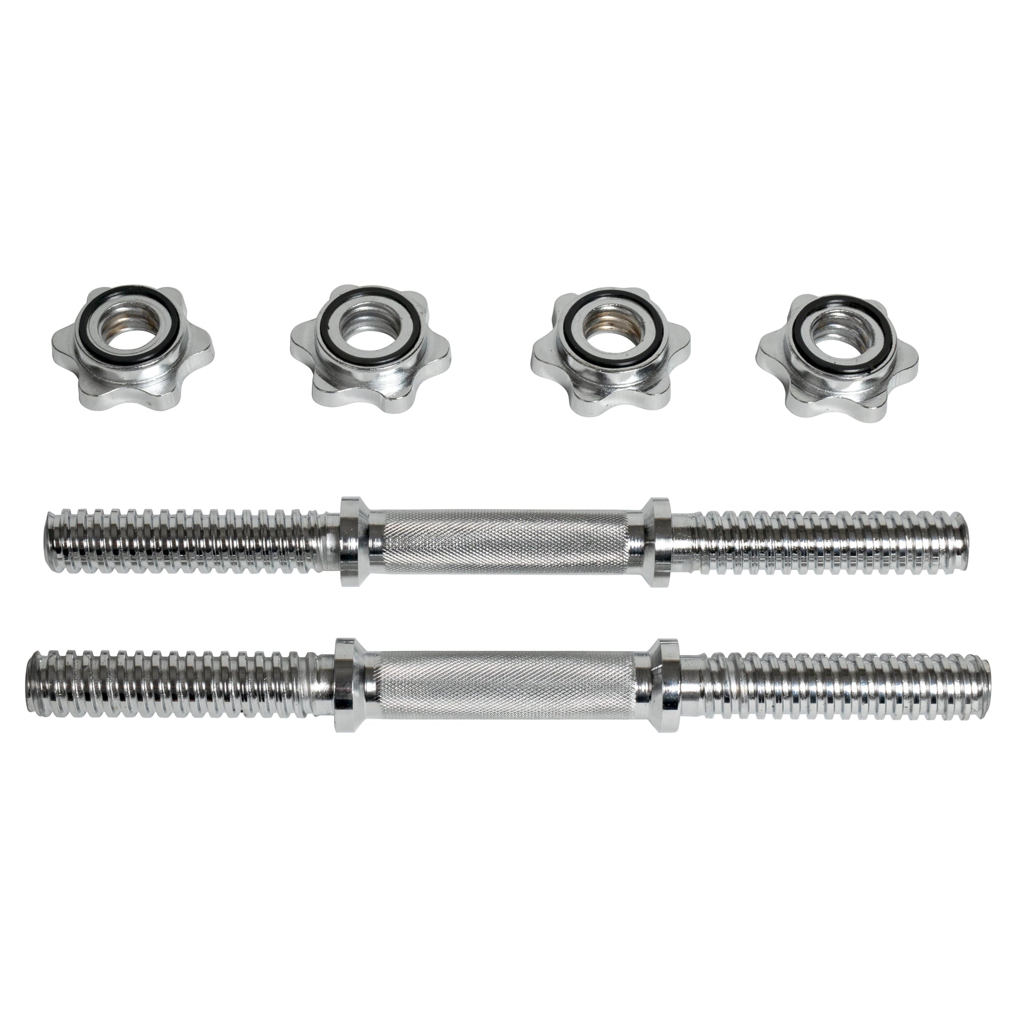 The 14” Solid Steel Spinlock Dumbbell Handles w/ Collars features two 14” spinlock dumbbell handles in the set. These spinlock dumbbell handles offer a 4 7/16” collar and come with four spinlock collars to secure your 1” standard plates. Spinlock Dumbbell Handles are easy to use and can be utilized by beginners and advanced weightlifters. Each handle features a brilliant chrome finishing to increase durability as well as complement your York Barbell standard plates.