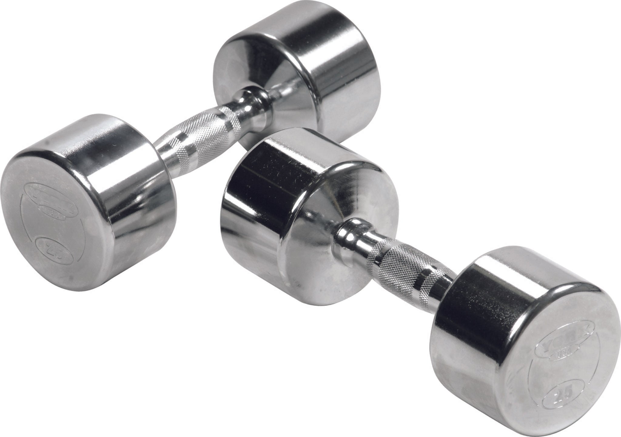 • The YORK® Chrome Dumbbell is a highly reflective and attractive dumbbell that makes a BIG visual impact in any setting. The knurled chrome handles are ergonomically contoured to fit comfortably in the palm of the user. Solid steel heads ensure maximum durability of the bright chrome finish, making these dumbbells ultra-resistant to chipping, crackling or peeling. Chrome Dumbbells are available from 2.5 – 50 lb.