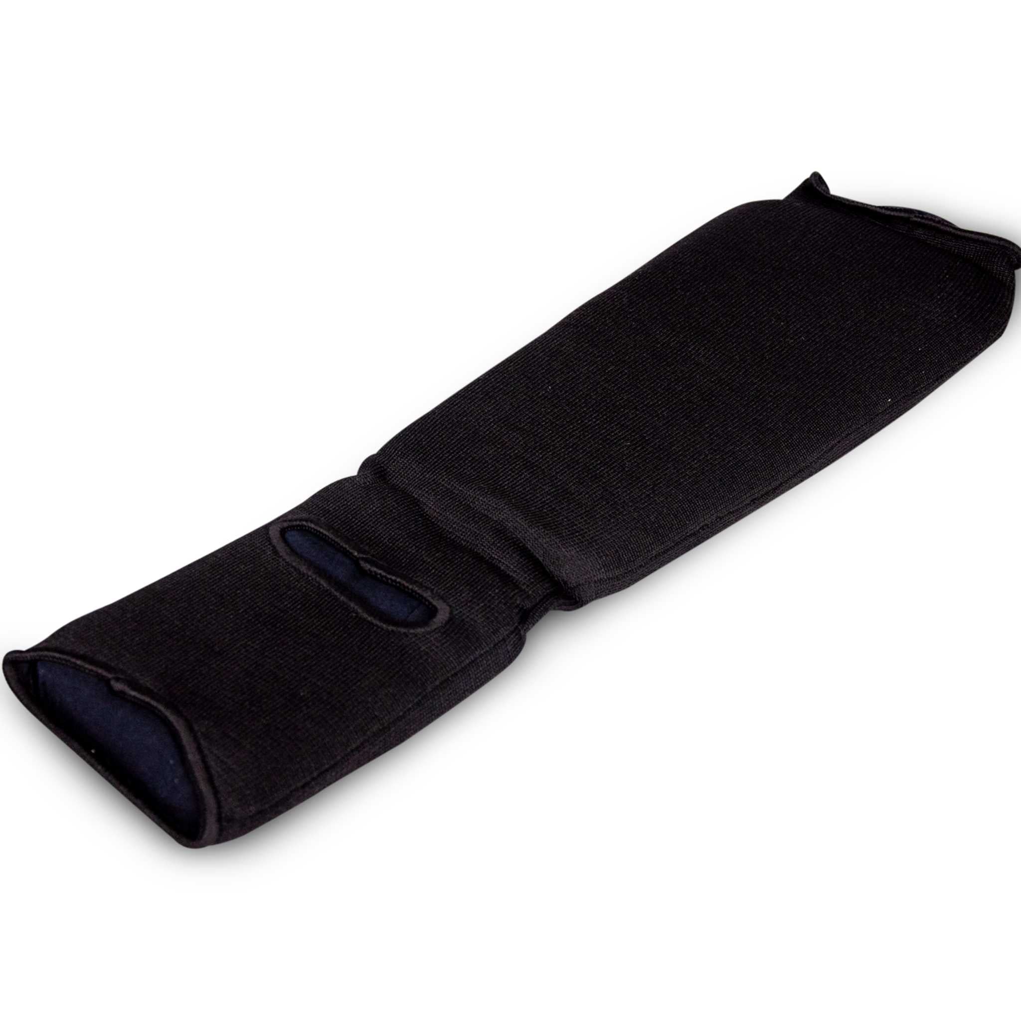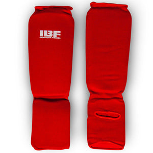 These IBF Iron Body Fitness training-style shin guards are worn when training in Muay Thai, kickboxing and other martial arts, and are made to endure the toughest MMA workouts. The guards consist of high-impact, shock-absorbing foam with an in-step guard for optimal protection when practicing kicks. The lightweight, knitted cotton cover provides exceptional comfort. Available in two sizes, SM/MED (black) and LG/XL (red). Sold in pairs.