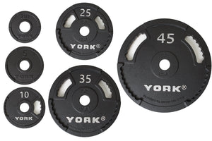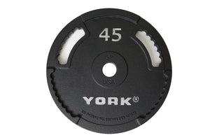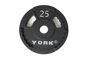 The YORK® G2 Cast Iron Olympic Weight Plates feature an innovative interlocking design allowing more room on the collar for additional weight. Two easy to grab handles are strategically placed to make plate pickup and bar loading/unloading much easier. These innovative interlocking plates are perfect for school weight rooms, home gyms, and commercial settings.
