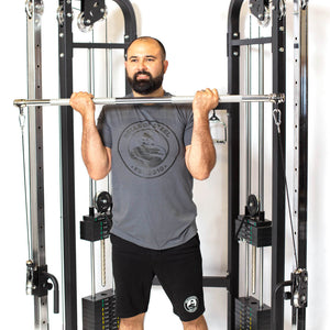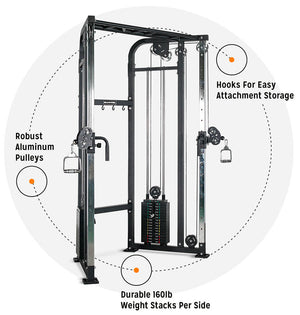 The Bells of Steel Functional Trainer adds an unmatched amount of versatility to your home gym. With 16 cable heights, dual 160lb weight stacks, and two handles included, you can add hundreds of exercises to your routine and flex on the rest of your neighborhood.