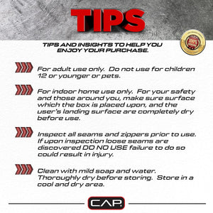 • High Quality Materials: Engineered for long-lasting performance, our jump box features a PVC cover that resists wear and tear, maintaining its appearance over time. The EPE foam interior ensures comfortable landings while absorbing impact effectively.