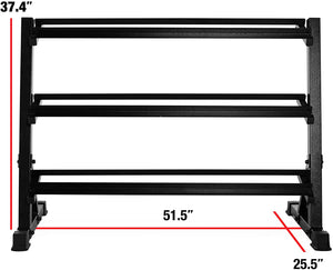 • This set includes a pair of 5, 10, 15, 20, 25, 30, 35, 40, 45 and 50 LB dumbbells with a heavy duty 3 Tier Rack. The rack can hold up to 1,000 LB.