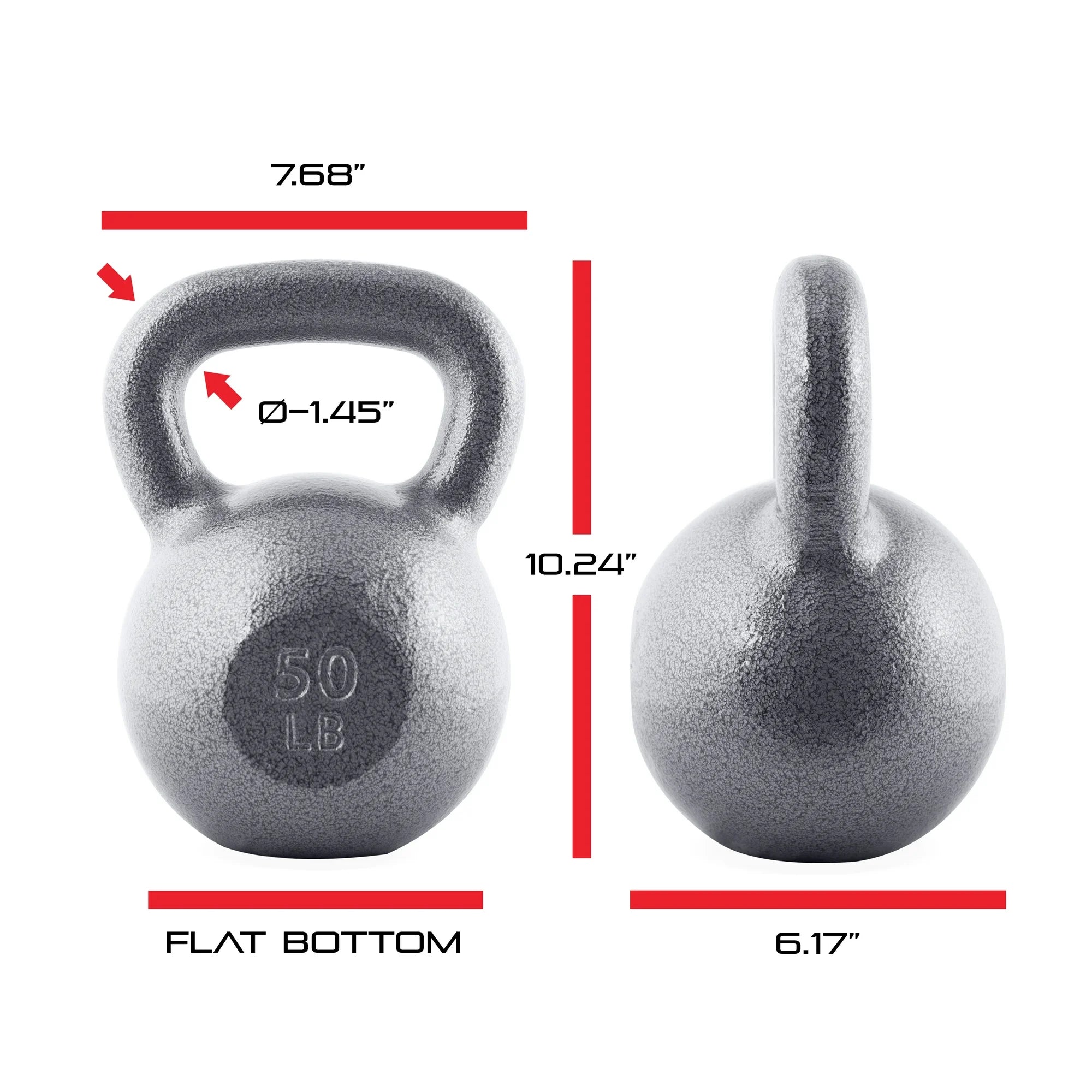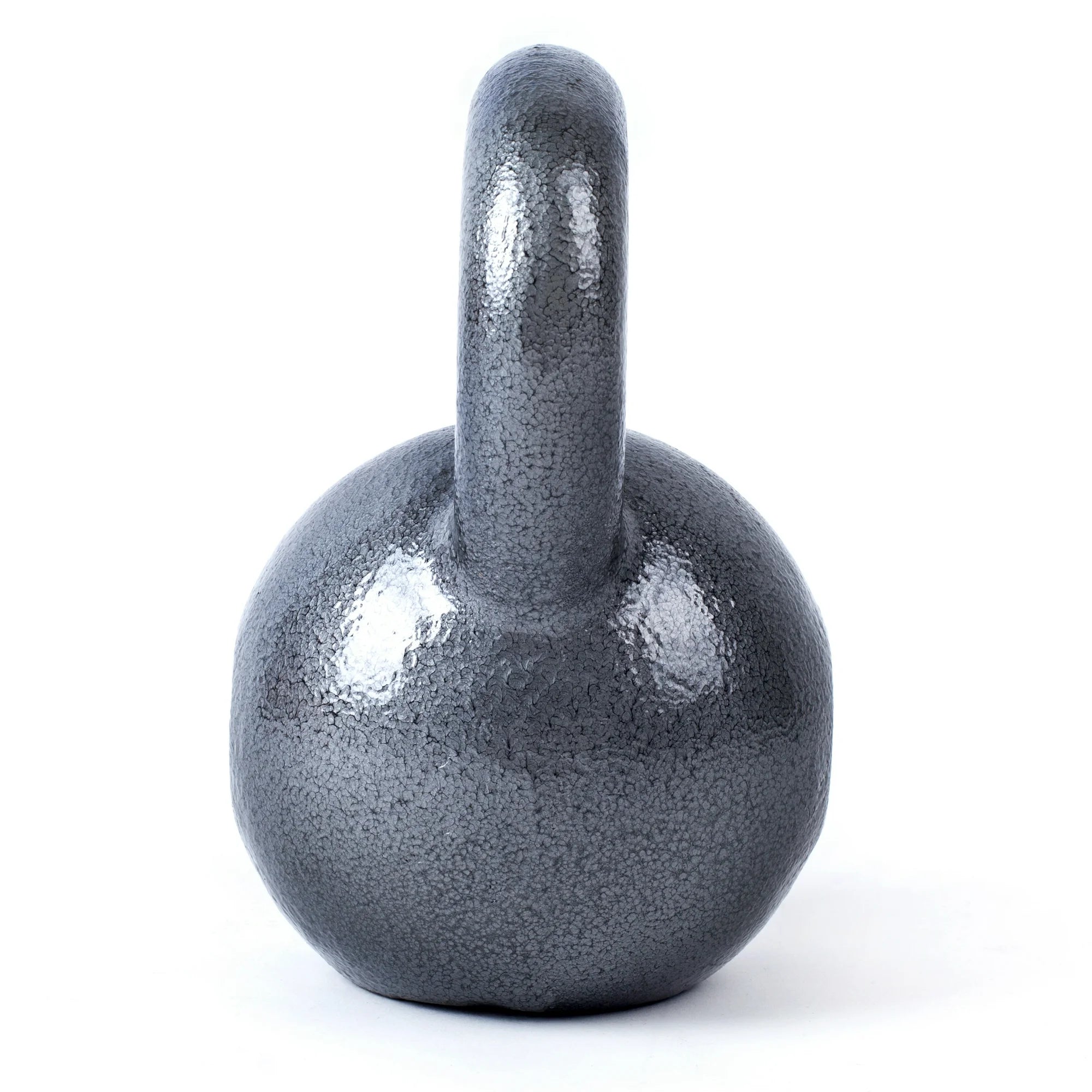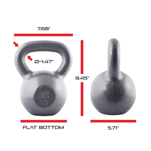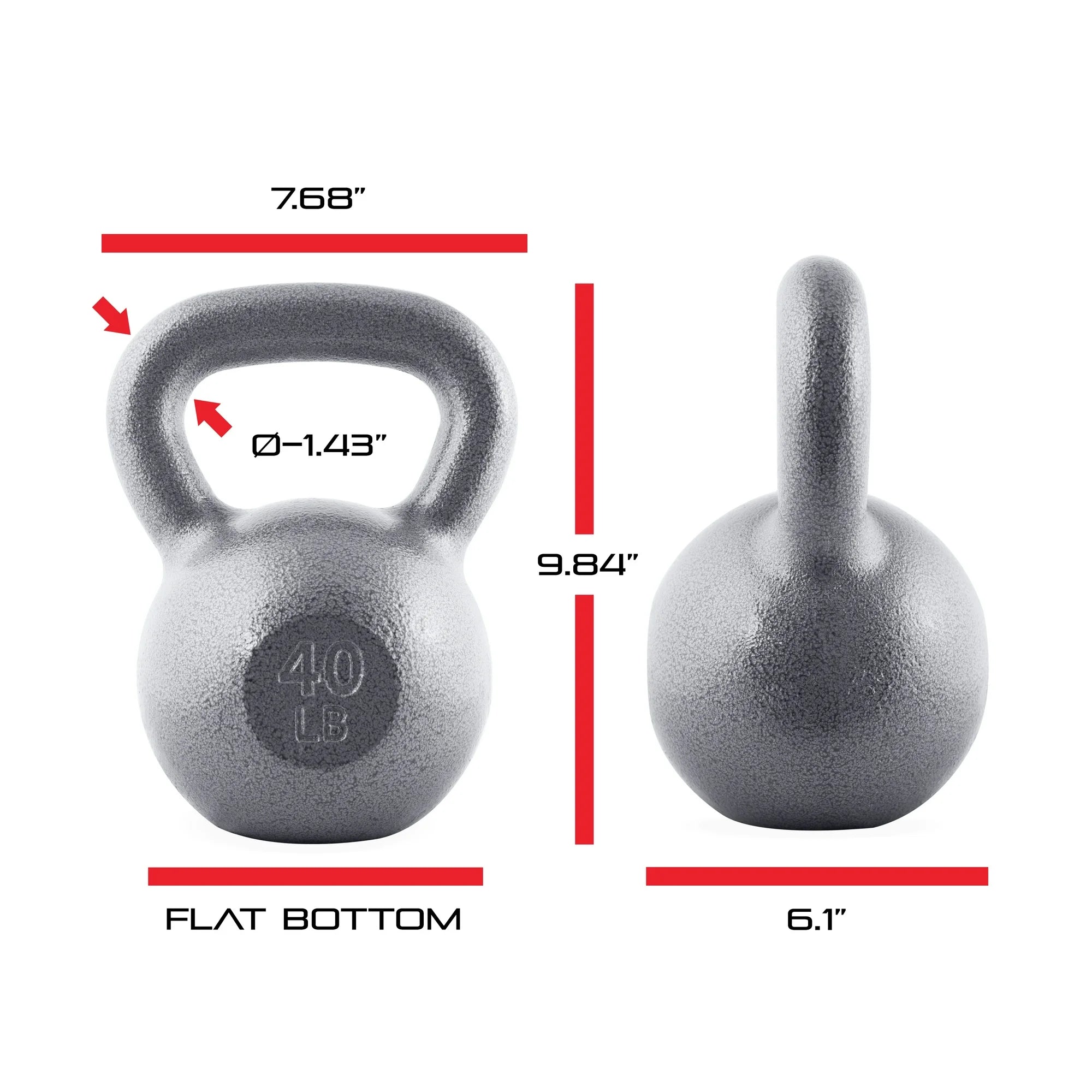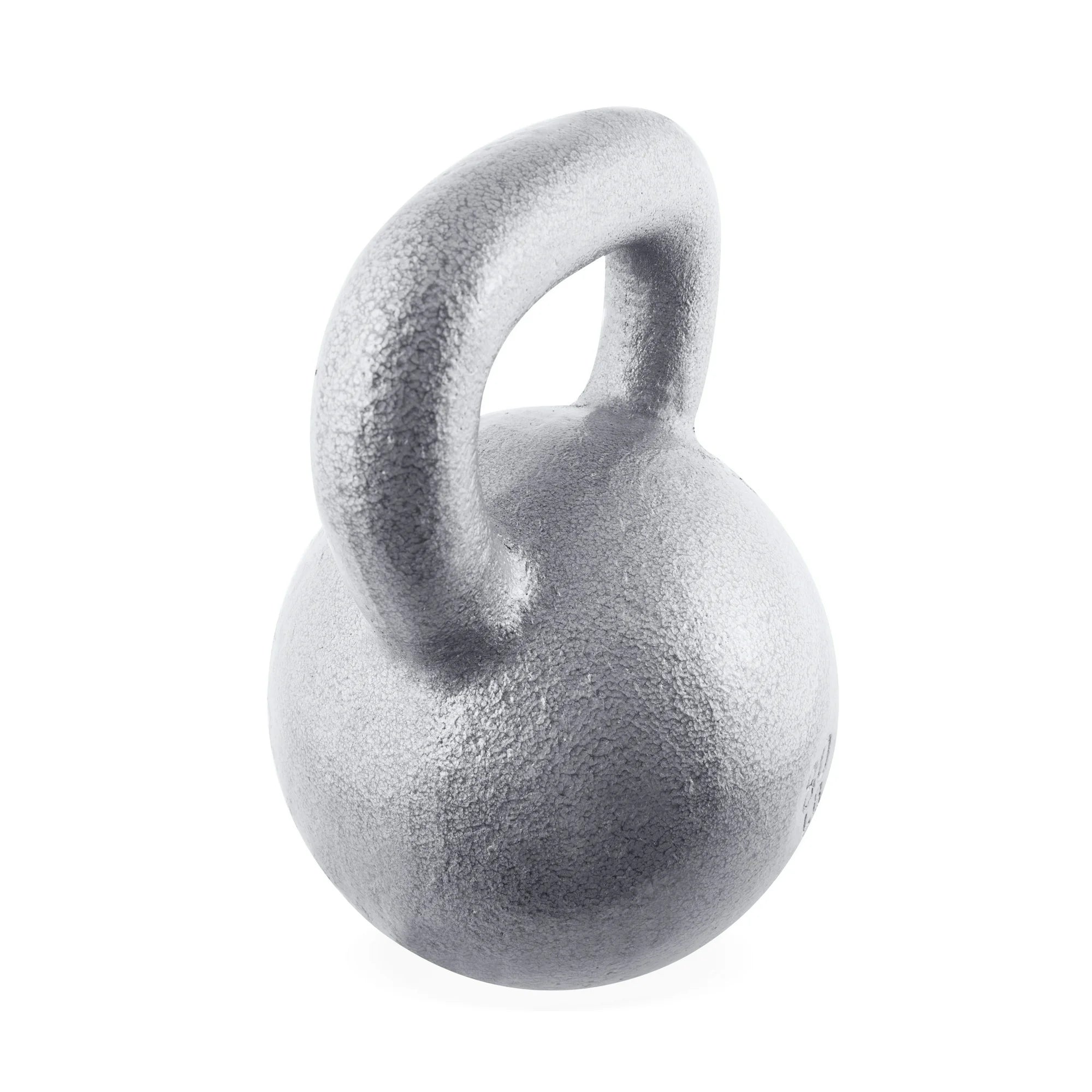 • You can improve your strength and endurance with ease using the CAP Cast Iron Kettlebell. It is designed to strengthen and tone your muscles by lifting and controlling its motion through a variety of prescribed exercises movements. Made from solid cast iron with a tough enamel finish, it is an extremely versatile piece of workout gear that will withstand everyday use. It features a soft, comfortable grip that allows you to switch it from one hand to the other while maintaining your balance and stability. When used with a controlled motion, this CAP Barbell kettlebell will help you get a whole body workout while focusing on specific muscle groups. You can perform bicep curls, triceps extensions and other exercises quickly and efficiently. Give your body a full workout in just a matter a minutes with this kettlebell.
