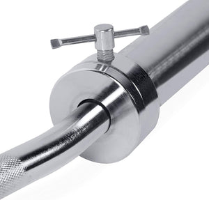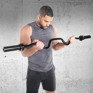The CAP Olympic Super Curl Bar is designed to reduce the pressure on your wrists and forearms when performing curls, triceps extensions, skull crushers, preacher curls and more. The super angled shaft on this Olympic Super Curl Bar will aid in developing upper arm mass, strength and definition while simultaneously reducing discomfort in your forearms. This bar is constructed from solid cold rolled 51,000 PSI tensile strength steel with a chromed finish and includes ring collars to secure weights when going heavy.