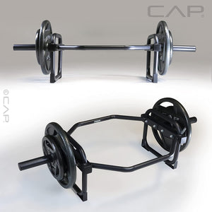 Build strength and fuel your muscle growth by engaging large muscle groups with the CAP Barbell Olympic Trap, Shrug, and Deadlift Bar. This bar features neutral placed grips for comfort and elevated sleeves for less strain on the back muscles. The incorporate feet protect floors from getting scratched and scuffed up by weight plates and help balance the bar while loading and unloading weights. The compact design of this basic trap, shrug, and deadlift bar will take up a minimal amount of space in your home gym. CAP’s Basic Trap, Hex, Shrug, Deadlift bars are a serious addition to any home gym. Designed to handle heavy weight safely and securely with coatings applied that last through the most grueling workout.