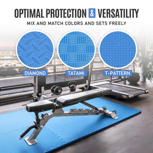 Protect your home gym floor with the CAP Barbell Mold and Mildew Resistant Foam Puzzle Mat. It is ideally suited for covering hard floor surfaces in gyms, exercise rooms, trade shows and playrooms. The CAP Barbell puzzle mat comes in Diamond, T-Pattern or Tatami styles in sizes24 SQ FT (6 Pieces), 48 SQ FT (12 Pieces), 72 SQ FT (18 Pieces) or 96 SQ FT (24 Pieces).