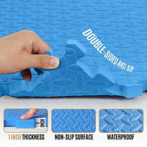 Protect children's knees in playrooms at home or in a childcare setting. Ease the strain on your back from constant standing at your workplace, in your garage or even in front of your kitchen sink. The 1/2", 1/2" or 1" thick high-density foam provides a firm cushion wherever you need one, and the mold and mildew resistance helps protect your floor, as well as whatever furniture or equipment is placed on the workout floor mat.