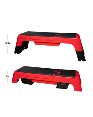 The workout possibilities for this home training tool and gym accessory are infinite! The design of the adjustable bench caters to an aerobic focused workout, strength training and resistance band exercises. When looking for a step, the 8″ high bench is ideal for low-impact aerobics. Elevate the bench with the included risers to 14″ to increase the intensity. Use as a training bench in flat, inclined, or declined positions for your desired needs. Combine resistance bands and tubes or weights to various exercises such as front raises, squats, step ups, weighted rows, Bulgarian split squats, etc.