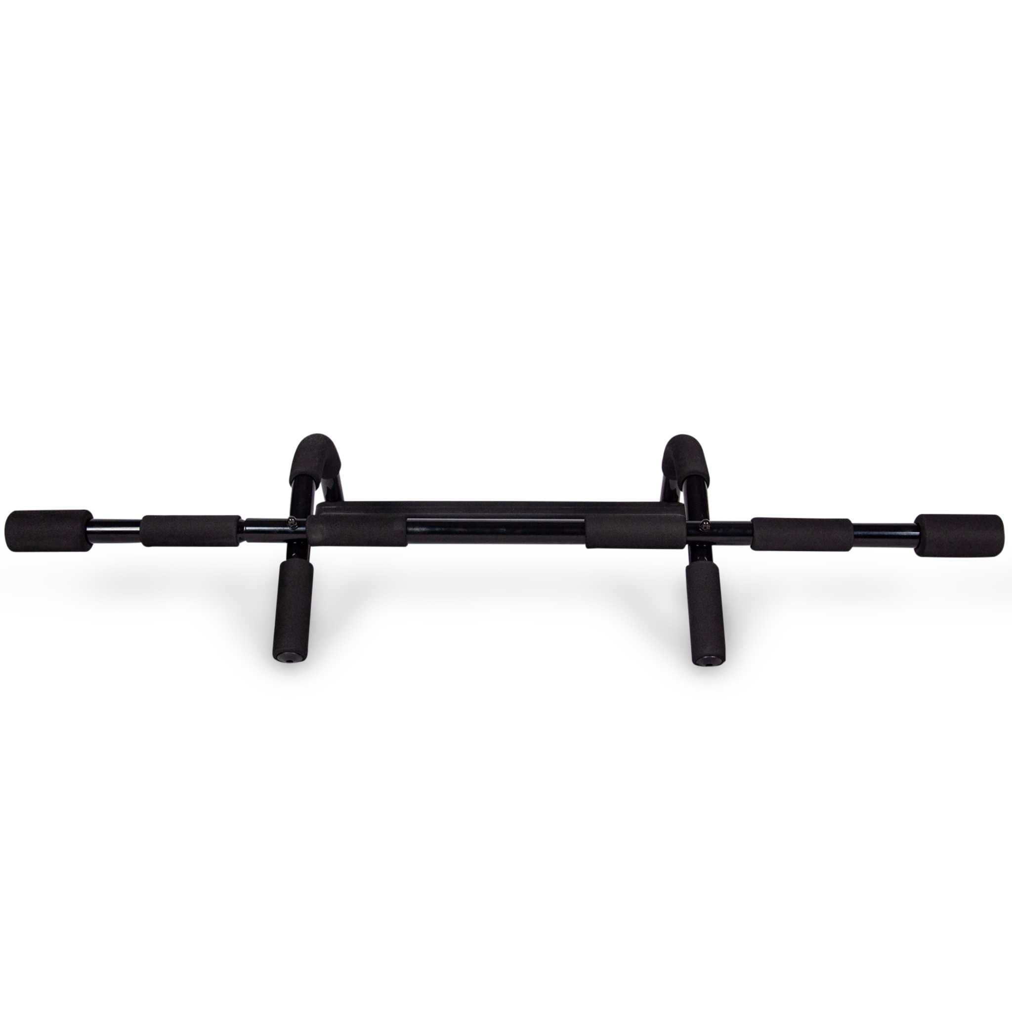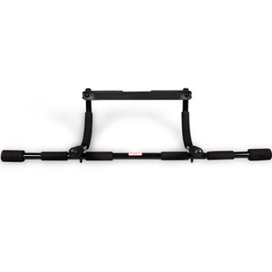 Sculpt and trim your entire body with the IBF Iron Body Fitness door gym pull-up/chin-up bar. The ideal multi-functional upper-body trainer allows for pull-ups, sit-ups, push-ups, tricep dips, and more! The multiple foam-covered handles allow for various grip positions that target different muscles. It fits on most doorways and easily mounts in seconds without any screws, so it will not damage your door frame.