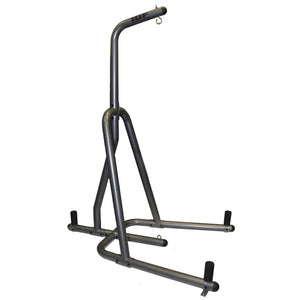 The IBF Iron Body Fitness heavy bag stand is the ideal accessory to keep your IBF heavy bag hanging tough. Perfect for boxing, MMA or fitness training, the extra-thick heavy-gauge 3” round steel frame sets it apart from other available stands, while the screw-down plates for floor mounting and anti-slip base caps keep the stand in place. Shortened rear support allows for complete movement around the stand. Ideal for home and light commercial use. Heavy bags are sold separately.