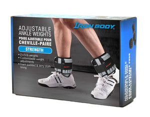 Add weighted resistance to any workout and build strength with these IBF Iron Body Fitness deluxe adjustable ankle weights. The weights feature an ultra-soft gel foam padding for extreme comfort and an adjustable closure for a secure fit. Incrementally increase or decrease resistance with twenty individual iron bar weights for customizable weight adjustment. Available in 5 lb. pairs (2 x 2.5 lb.), 10 lb. pairs (2 x 5 lb.) or 10 lb single (1 x 10 lb)