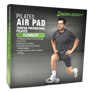 The IBF Iron Body Fitness Pilates air pad / balance disc is a versatile piece of exercise equipment ideal for increasing overall strength, balance, and flexibility. Tone and strengthen multiple muscle groups by performing a variety of upper and lower body exercises on the uneven knobbed surface, making standard exercises more challenging. Promotes improved posture, core stability, and full-body coordination. It makes a terrific addition to any workout anywhere, anytime.