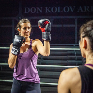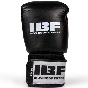 IBF Iron Body Fitness Training Series Boxing Gloves feature a durable vinyl outer shell with a shock-absorbing padding system and reinforced stitching to endure the toughest Boxing and MMA workouts. They have a breathable, moisture-repellent inner lining. The extra-wide adjustable strap makes them a one-size-fits-all glove, offering the protection, comfort, and performance you expect from IBF Iron Body Fitness. Available in 8, 10, 12, 14 and 16 oz. weights.