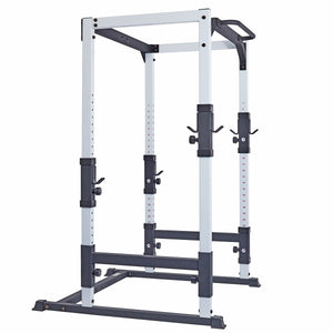 The York Barbell FTS Power Cage is part of our light commercial grade line of equipment. This line is perfect for in home use but can also be utilized in small studio gyms or schools. The unit features multiple bar hooks for flexible use with a variety of exercises. These bar hooks can easily be moved to meet the needs of any exercise being performed inside or outside of the cage. Moveable safety bars are also featuring on this cage to provide additional safety when performing exercises inside of the cage. This rack features a chin up bar for additional exercises.